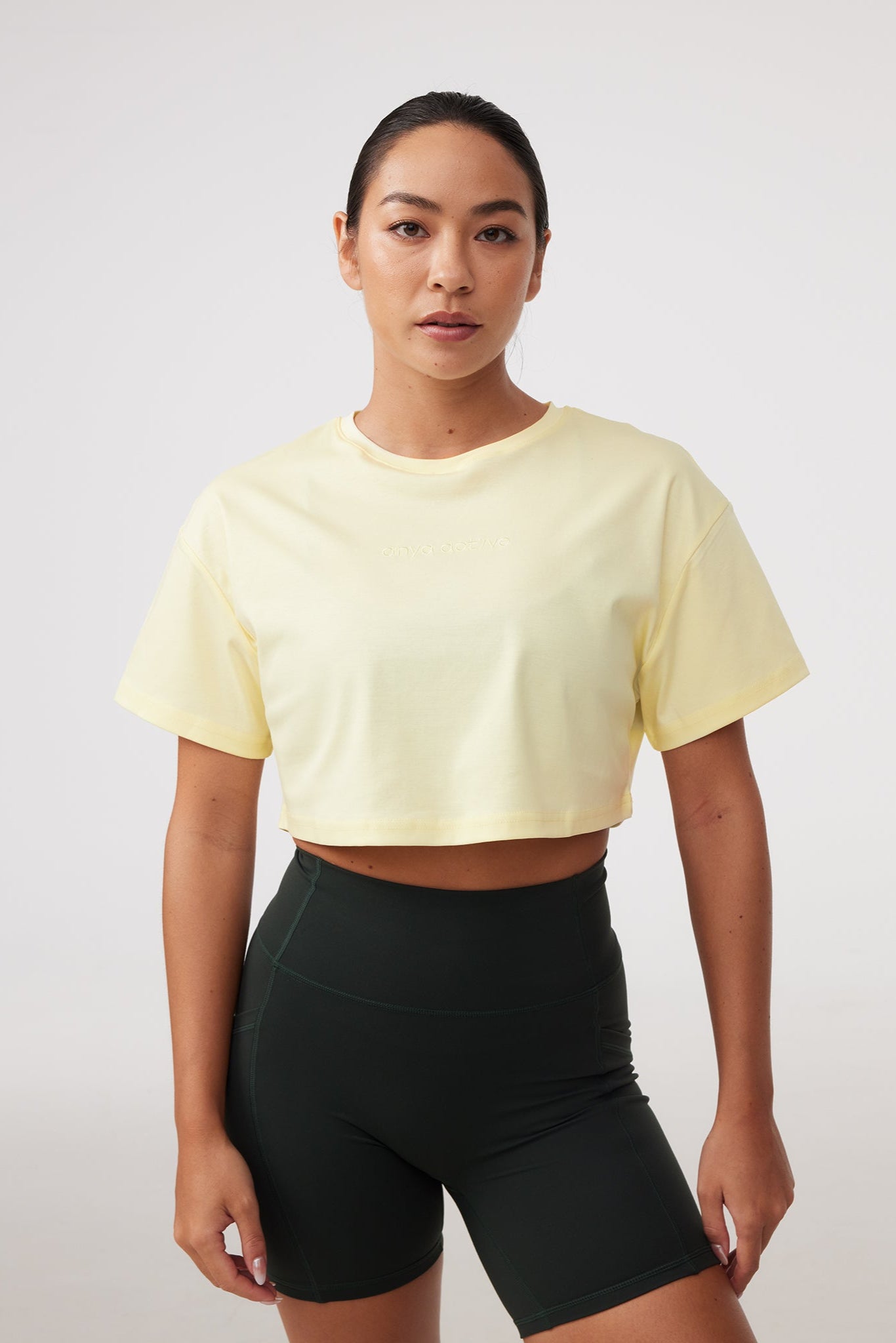 THAT ultra-soft tee, in crop length. Strategically cut at a length to flatter your silhouette.